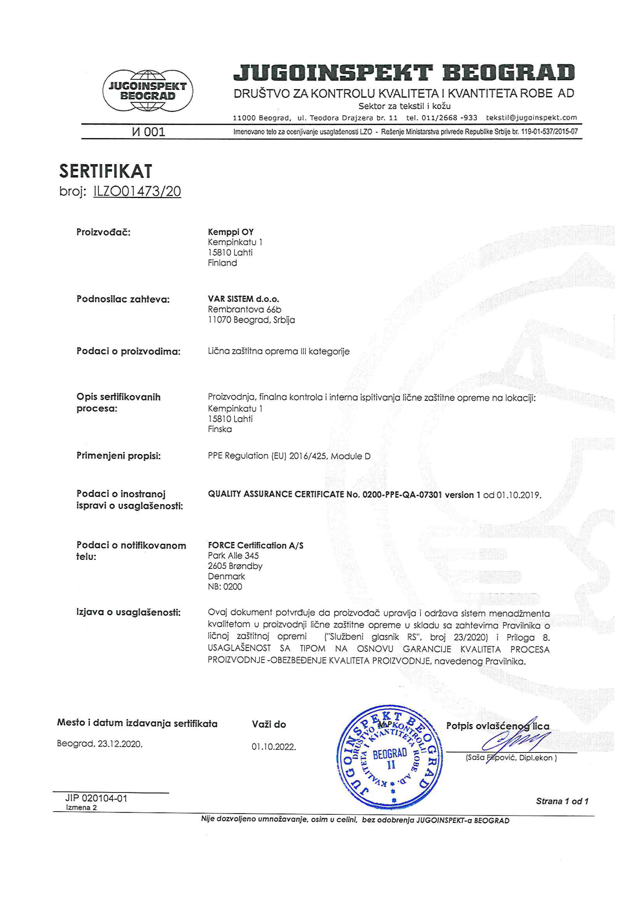 - Za zavarivanje, sečenje, brušenje, pinspekciju posla